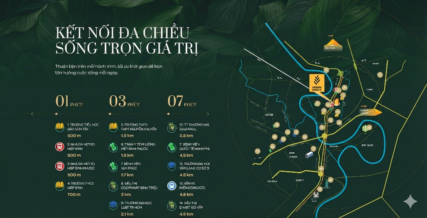 Tọa lạc tại vị trí “vàng” thuộc phường Hiệp Bình Phước, TP. Thủ Đức, Urban Green sở hữu khả năng kết nối giao thông vượt trội:
