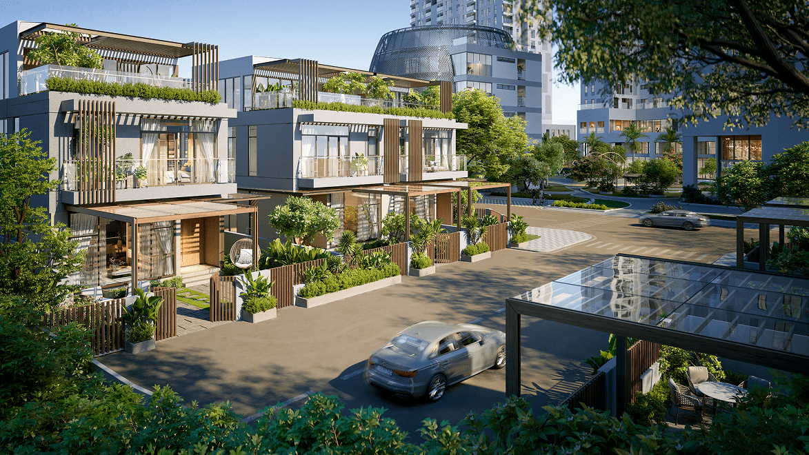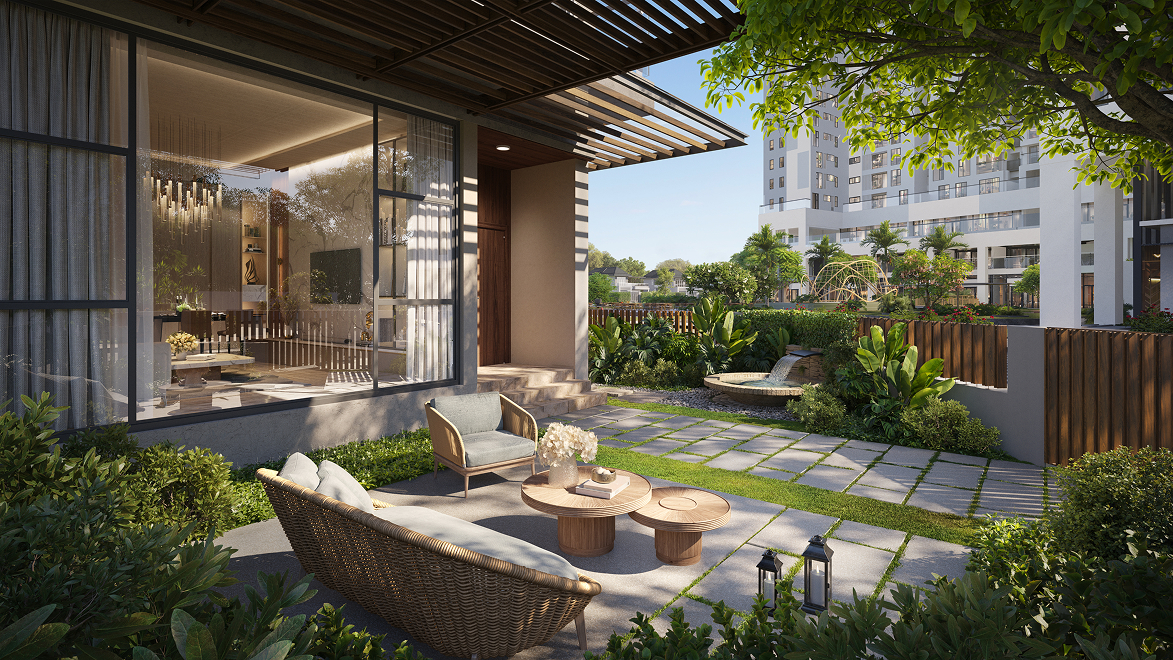 • Sân vườn riêng: Mỗi căn villa đều có khoảng lùi xanh ngắt, nơi chủ nhân tự do sáng tạo khu vườn theo ý thích.